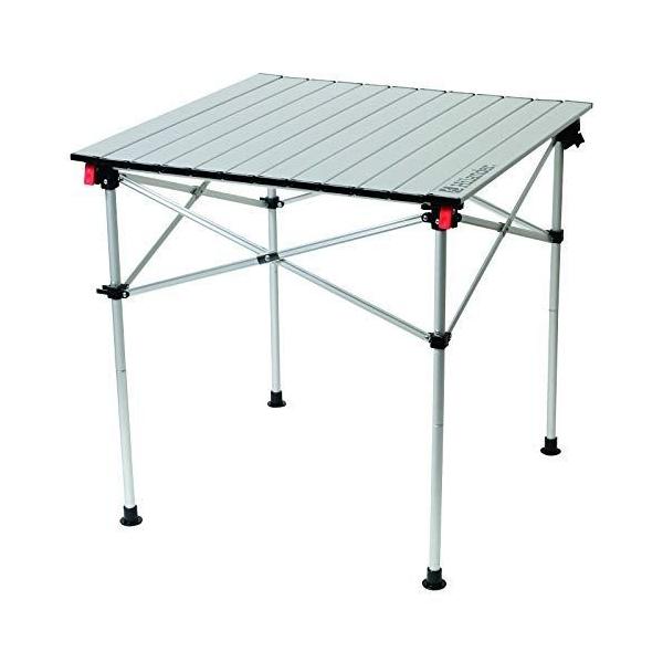アルミの風合いをそのまま活かした、シンプルなキャンプ用テーブル。幅70cm、奥行き70cmのテーブルとしては、かなりお手頃な製品です。それでいて高さ調整の機能を備えており、ロースタイル・ハイスタイルのどちらにも使えます。