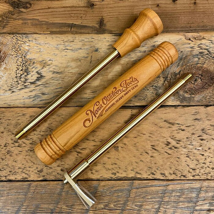 重厚なテクスチャが魅力の真鍮火吹き棒「野良ブラスター 3本継ぎ 60cm」をベースに、栗の木製のカスタムパーツ「ウッドグリップ」・「けん玉吹き口」、真鍮製「鳶付き金具」がすべて揃った男前フルカスタムセットです。