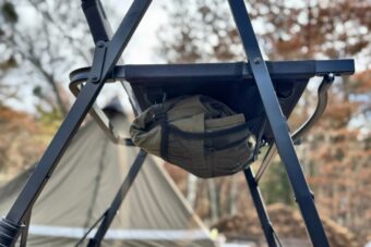 天板のサイズはハイ&ローいずれも縦47cm×横80cm。一般的なウッドロールテーブル(60cm×90cm)よりひとまわり小さく、ソロキャンプやデュオキャンプに最適なサイズ感といえるでしょう。